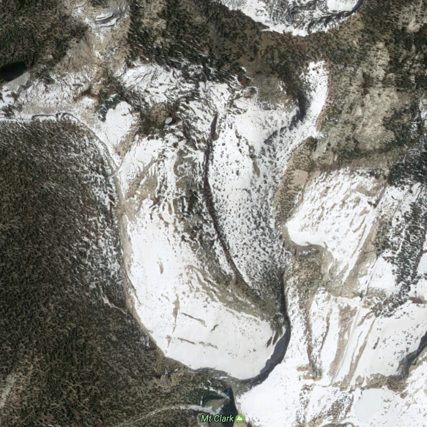 When I got to the foot of the snowfield I took off my pack and tried going up it. The snow was soft, and of course, I had no snowshoes. My boots sunk in a foot or more as I went along. It would be hard to climb to the brim, even if I had a whole day and no pack to carry. I was also concerned about triggering an avalanche. I didn’t know much them then, but now I know there was no danger. (I did make it up to Mt. Clark and down over that brim a few years later.)