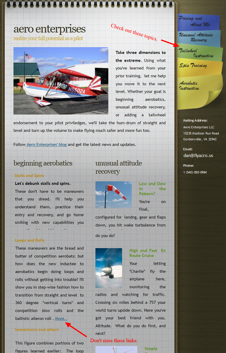 [Nice, short videos of basic aerobatic figures. Click the image to the right to see hints.]