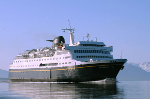 The ferry sailed along at about 17 knots (20 mph), so it’s not much faster than a bicycle. But it travels 24 hours a day vs, say, 8 hours at 10 mph on a bike (considering hills, eating, etc.). The ferry goes six times as far in a day as a bicycle tourist. It’s a little over 1,200 miles through the Inside Passage to Alaska. The ferry gets there in about three days. It would take 15 to 20 days on a bike (if there was a road). 😀