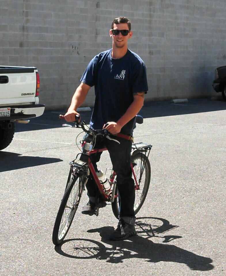 I only had to haul about 60 pounds, including my bicycle, up there. It was 3,280 feet to the summit. The grade on the climb is about 8% — about all I could handle. It took me two hours. That’s the hardest climb I ever made, and I did it without stopping. The narrow-gauge train on its track off to the right beat me to the top, though.
