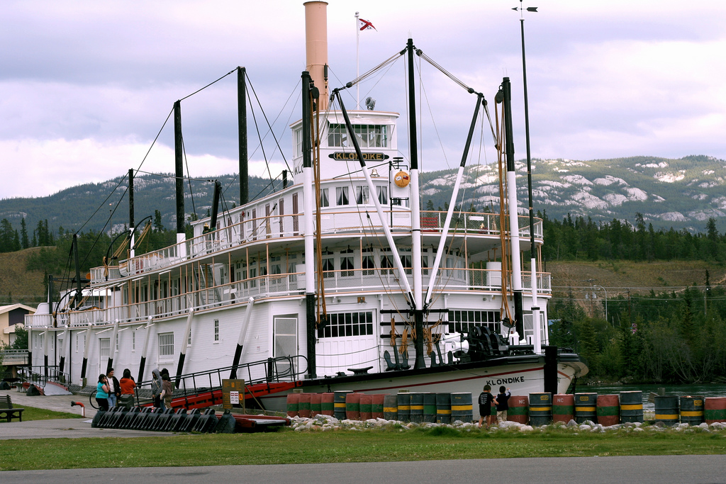 I went to see the big old SS Klondike sternwheeler too. It’s a National Monument in Whitehorse. It is handsome. Mark Twain would have surely loved it. There was no road to Dawson City until about 1950. Sternwheelers served as the primary transportation. [Photos of Whitehorse]