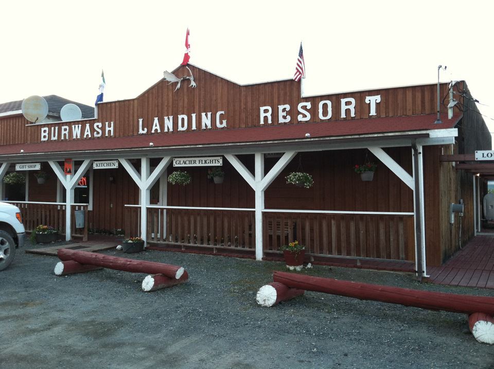 I said thanks, but I’m going on to Cottonwood Park. The road was steep up from the shack and then turned south and followed a ridge. I was in my lowest gear because it was so steep going up the hill. I figured I’d be able to go faster after the turn, but the wind was so strong I had to stay in the lowest gear. A little bit of that and I turned around, coasted down to the shack, had a laugh with the young people and went over to the Burwash Landing Resort.