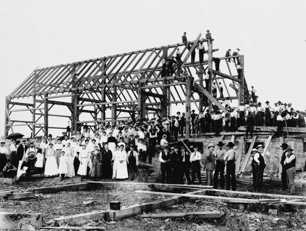Most Midwestern farms had a big red barn in 1900. They were for horses and milk cows. There was hay in the loft and oats in a bin to feed them. There was a “stock tank” outside for them to drink from (and for boys to swim in). Building a barn was a big undertaking. The community held a barn raising when it was time to build one of those barns.